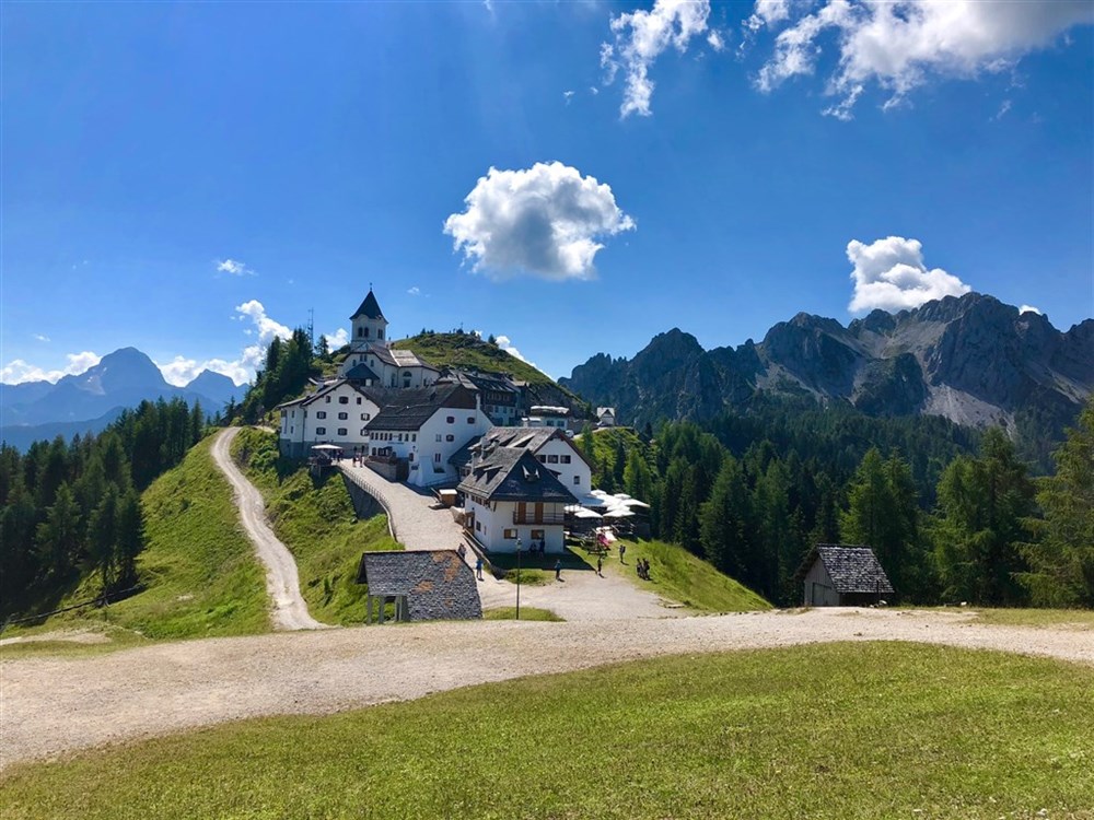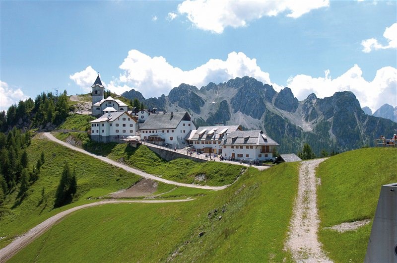 Tarvisio/ Camporosso – lokalita Monte Lussari v nadmořské výšce 1 766 m, přístup jen kabinovou lanovkou z obce Camporosso